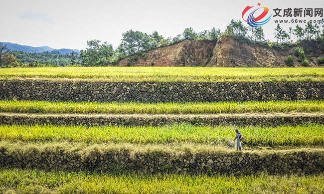 金色梯田基地負責人梁月琴介紹:“稻田觀賞期一直到10月15日才結束,國慶假期可以來觀賞咱們這里的美景。為了游客行走方便,我們還特意將田邊的雜草除掉!