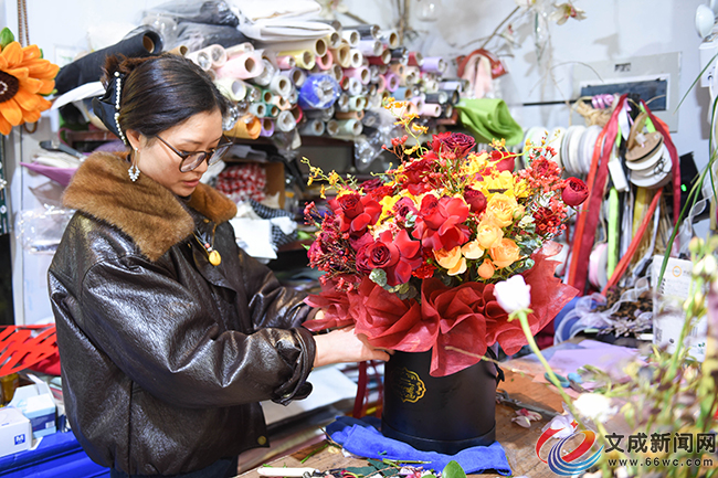 記者在走訪中發(fā)現(xiàn),各大花店早已忙碌起來。在花間密碼花店,貨架上,紅色康乃馨、玫瑰等傳統(tǒng)年宵花品種整齊排列。店員李雪正精心搭配花束、整理盆栽,她告訴記者,店里鮮紅花色的品種是多數(shù)市民選購的首選,北美冬青等寓意吉祥的觀賞類花卉也備受青睞。